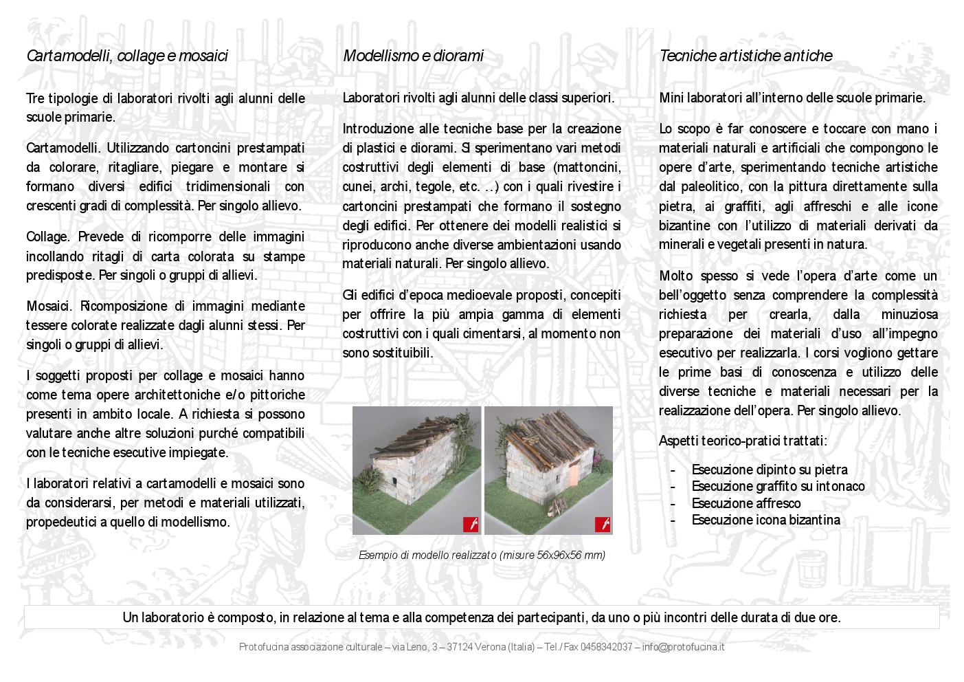 CORSI ARTISTICI Allo studio, in cooperazione con istituti scolastici, laboratori pratici per la sperimentazione delle diverse tecniche artistiche (collage, mosaico, modellismo, pittura su pietra, graffito, affresco e icona bizantina).